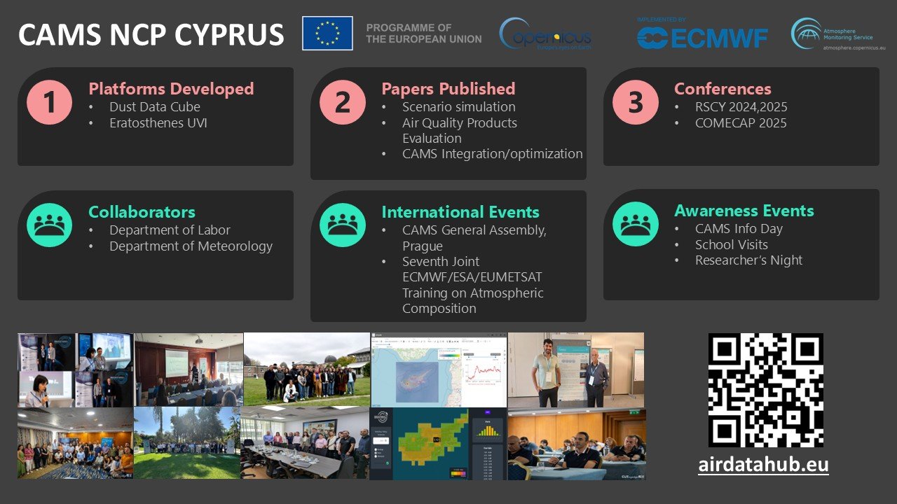 Στο πλαίσιο της Υπηρεσίας Παρακολούθησης Ατμόσφαιρας Copernicus (CAMS), που υλοποιείται από την ECMWF και υποστηρίζεται από την Ευρωπαϊκή Ένωση, το Κέντρο Αριστείας ΕΡΑΤΟΣΘΕΝΗΣ συνεχίζει να προωθεί την ατμοσφαιρική έρευνα και ευαισθητοποίηση στην Κύπρο.